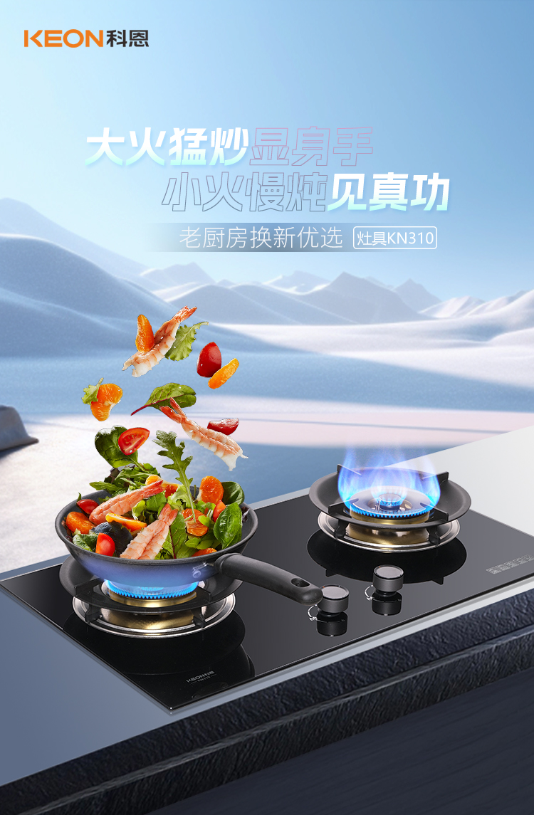 廚房煥新選對灶,KN300小灶大能少折騰,KN310全能適配多場景,新國標一級能效硬核實力,換裝不改孔超省心,美味安全雙豐收。老房煥新不用愁,新房裝修更要優(yōu)。科恩KN300,KN310新品將來襲,匠心品質(zhì)賦能三餐,節(jié)能科技守護家園,科恩相伴,三餐有味!