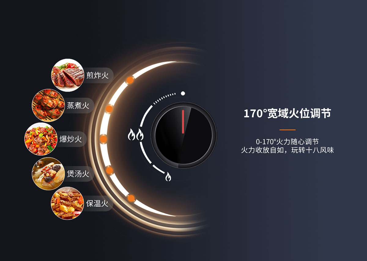 防滑旋鈕,輕松掌控火力,美觀更時尚